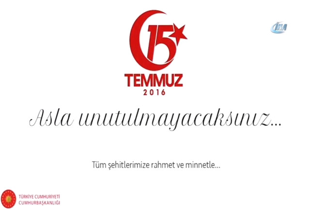‘Bundan 2 yıl önce ruhunu şeytana satan Pensilvanyalı katiller, ülkemize, namusumuza, devletimize kastetmişlerdi. Milletimizin feraseti, tarihten getirdiği birlik ve beraberlik duygularıyla bu saldırıyı hep birlikte bertaraf ettik. Bu alçaklar, vatansızlar, ülkemizde yabancı bir bayrağın dalgalanmasını arzu ettiler. Mabedimize namahrem elini sürmek istediler ama milletimiz buna izin vermedi ve bundan sonra da vermeyecektir. Hiç kimse bu devleti bölemeyecek, bu milleti birbirinden ayıramayacaktır.’
