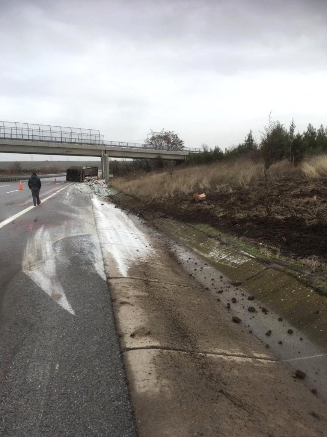 Edirne’de Tır Yan Yattı, Sürücü Yaralandı