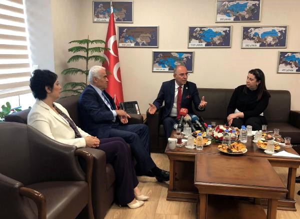 MHP Genel Başkan Yardımcısı Karakaya, bayram ziyareti kapsamında CHP Genel Başkan Yardımcısı Lale Karabıyık ve beraberindeki heyeti ağırladı. Bayramların siyasi partiler arasındaki ilişkilerin gelişmesinde ciddi katkılar sağladığını belirten Karakaya, ‘İnşallah 24 Haziran akşamı Türkiye bir demokrasi sınavını daha tamamlamış olacak. Ülkenin geleceği hep tartışma konusu. Bunları asgari zeminde aşacağız. Türkiye bir çiçek bahçesi. Bizim tek karşı çıktığımız şey ayrık olmak’ ifadelerini kullandı.