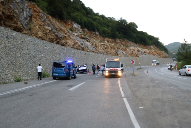 Zonguldak’ta iki aracın çarpışması sonucu meydana gelen kazada araçlardan biri ters döndü. Kazada 1’i ağır 6 kişi yaralandı. Edinilen bilgiye göre kaza Zonguldak-Ankara karayolu hayvan barınağı mevkiinde meydana geldi. İddialara göre, Zonguldak’tan Ankara istikametine seyir halindeki Muhammet T. idaresindeki 67 AK 130 plakalı kamyonet, sürücüsünün kontrolünden çıkarak karşı şeride geçerek Mehmet A. (27) idaresindeki 06 YGM 34 plakalı panelvan araca çarparak ters döndü. Kazada araçta sıkışan yaralıları olay yerine gelen AFAD ekipleri bulundukları yerden çıkartarak 112 sağlık ekiplerine teslim etti. Kazada yaralanan Anıl B. (18), Sergen T. (21) ve Muhammet T. (36) BEÜ Sağlık Uygulama ve Araştırma Merkezi’ne kaldırıldı. Panelvan aracın sürücüsü Mehmet A., Şaban Ş. (34) ve Ercan A. (50) tedavileri yapılmak üzere Atatürk Devlet Hastanesine kaldırıldı. Yaralıların tedavileri sürerken kazaya karışan araçlar çekici yardımıyla kaza yerinden kaldırıldı. Trafik bir süre kontrollü olarak sağlandı.